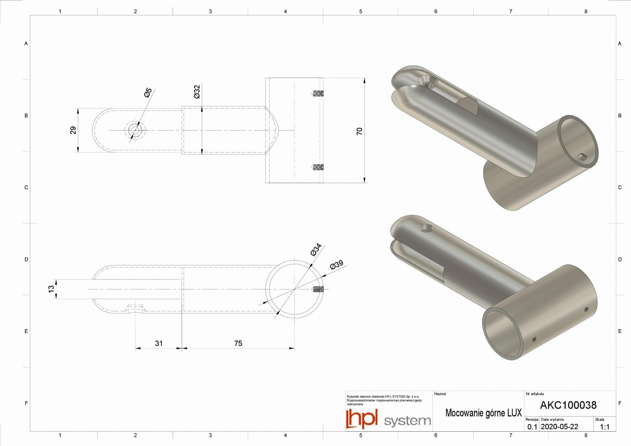 Mocowanie górne 1 szt.