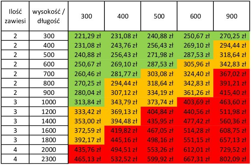 W przypadku konieczności zamówienia innych wymiarów niż wymienione - prosimy o kontakt.